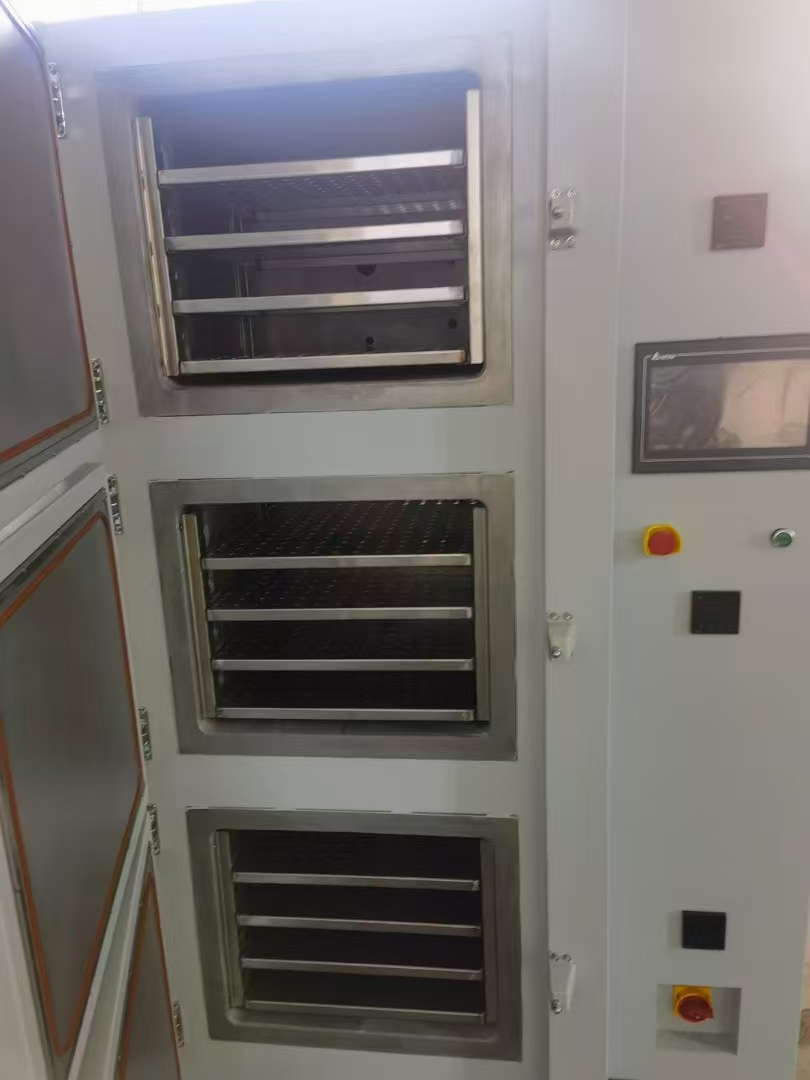 工藝流程:裝填物料→抽真空至抽真設定值→充入氮氣至設定值→加熱至設定值(鼓風啟動攪拌)→抽真空至設定值→恒溫烘烤設定值時間→啟動冷卻→循環(huán)充氮氣,降溫至設定值溫度,報警提示→開倉取料。